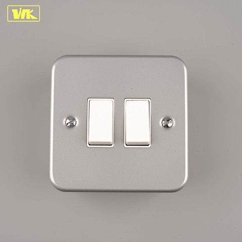 WK 영국 표준 스테인레스 스틸 2 갱 2 웨이 10AX 전기 벽 스위치